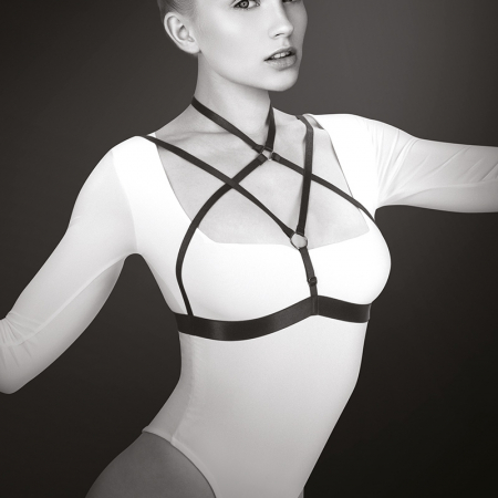 Harnais buste & tour de cou élastique femme – Lanières noires