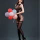 Minimaliste et affirmé, l’ensemble body en résille noire, motifs floraux et bas coordonnés, s’associe parfaitement à un blouson vinyle, des bottes montantes ou une veste transparente, pour une silhouette graphique et moderne, pensée pour la nuit et la scène.