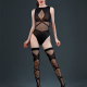 Le body noir présente une maille à motifs floraux géométriques qui alterne zones opaques et transparentes, révélant subtilement la silhouette sous la lumière. Les finitions précises et la matière extensible assurent un maintien parfait et un confort optimal tout au long de la nuit.