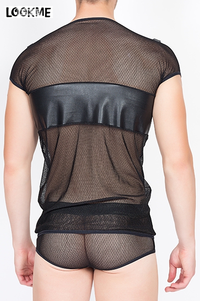 Ce t-shirt homme en résille et simili cuir a été pensé pour celles et ceux qui veulent se démarquer en festival et dans l’univers rave. Sa résille fantaisie fluide et légère crée un effet de transparence qui laisse apparaître subtilement le corps, tandis que la large bande en simili cuir qui traverse le torse ajoute une touche imposante et structurée.