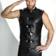 Adopte un look unique et affirmé avec cette veste noire sans manches en faux cuir.