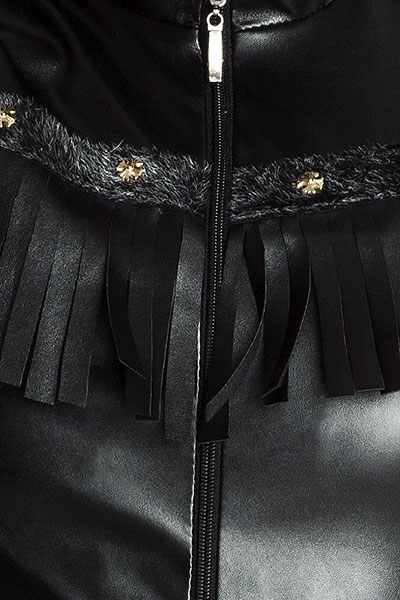 Les franges décoratives à l’avant et à l’arrière ajoutent du mouvement et de l’impact visuel, parfait pour marquer les esprits sous les lumières stroboscopiques. La coupe cintrée et zippée devant permet de la porter ouverte pour un style décontracté, ou fermée pour un rendu plus structuré.